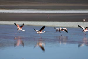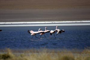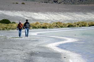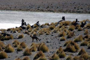 Sans doute l'une des lagnuas les plus remplie de vie. Les flamants roses y sont légion, ainsi que les vicuñas, lamas et autres vizcachas... Son nom veut dire "puante", à cause de l'odeur très forte qui s'en dégage... |