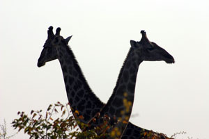 Las jirafas son animales extraordinarios. Majestuosas sin igual, constituyen una ruptura en el paisaje, un punto que agarra la vista de inmediato. Un cuerpo desproporcionado, cabeza chiquita, largas piernas robustas, en fin cualquier cosa pero componiendo un conjunto único. Sus movimientos son lentísimos, calculados, sus miradas curiosas, no dejan de mirar al turista durante largos minutos. Como si quisieran encontrar la solución a no sé que misterio. Cuando los demás animales ya huyeron, ellas se quedan a mirarle con sus grandes ojos, y luego se alejan, tranquilas, balanceando su cabeza. Uno no se cansa de admirarlas. |
